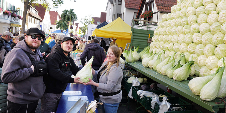 Dieses besondere Kulturgut wächst nur auf den außergewöhnlich guten Lösslehmböden der Filderhochebene. Mehr zum Krautanbau und zur Geschichte des Filderkrauts erfahren Sie hier. Noch ein Tipp: Sie können die leckeren Krautspeisen nicht nur am Krautfestwochenende genießen, sondern auch ganze Spitzkrautköpfe oder fertiges Sauerkraut mit nach Hause nehmen.