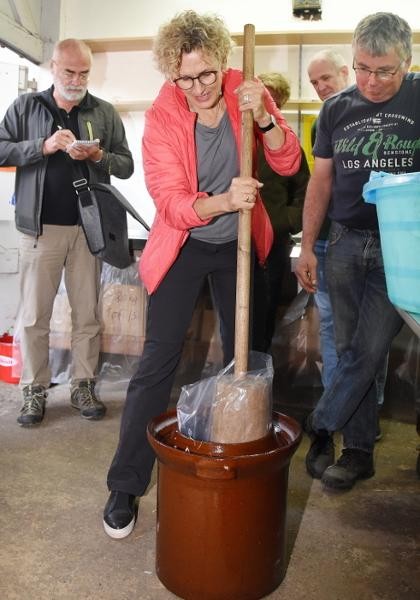 Diesmal auf dem 1,2 Hektar großen Krautacker von Landwirt Uwe Beck haben Erste Bürgermeisterin Eva Noller, die Vorsitzenden der Vereinsringe und Werbegemeinschaften eigenhändig die ersten Spitzkrautköpfe geschnitten. Im Hofladen von Uwe Beck in Echterdingen wurden die Krautköpfe anschließend von Hand gehobelt und gesalzen.