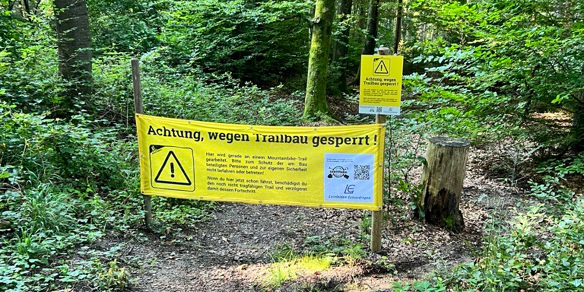 Am Trailbau wurden inzwischen Hinweisschilder (PDF, 793 KB) angebracht – mit der Bitte, dort nicht zu fahren, solange der Bau nicht abgeschlossen ist. Denn dies würde den Baufortschritt verzögern und die Sicherheit der am Bau beteiligten Personen unnötig gefährden.