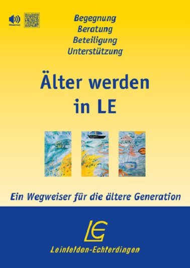 Der Seniorenwegweiser „Älter werden in LE“ (Ausgabe 2022) der Stadt Leinfelden-Echterdingen mit umfassenden Informationen über Begegnungs- und Beteiligungsmöglichkeiten, Beratung und Hilfen, 44 Seiten, kostenlos