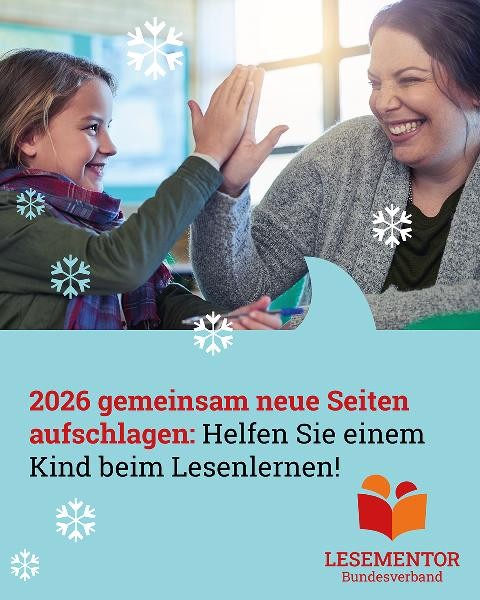 Wenn an Weihnachten Kerzen leuchten und Geschichten vorgelesen werden, bleibt es in manchen Kinderzimmern still. Nicht jedes Kind hat Bücher zu Hause und oft fehlt jemand, der vorliest oder beim Lesenlernen hilft. Als Lesementoren schenken Sie Kindern Zeit, Vertrauen und Lesefreude. So wird Lesen zu einem Geschenk, das bleibt - weit über Weihnachten hinaus. Denn Lesekompetenz und Textverständnis helfen den Kindern auch beim Lernen in der Schule.