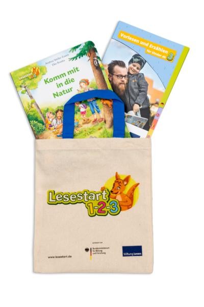 Freude am Lesen von klein auf Die Stadtbücherei Leinfelden-Echterdingen beteiligt sich beim bundesweiten Leseförderprogramm „Lesestart 1-2-3“ des Bundesministeriums für Bildung, Familie, Senioren, Frauen und Jugend und der Stiftung Lesung. Regelmäßiges Vorlesen von klein auf fördert den Wortschatz und schafft eine wichtige Grundlage für einen erfolgreichen Bildungsweg. Mit Buchgeschenken werden Eltern dazu motiviert, ihren Kindern schon frühzeitig und regelmäßig vorzulesen. Dieses Ziel hat „Lesestart 1–2–3“, ein bundesweites Förderprogramm für Eltern mit Kindern zwischen einem Jahr und drei Jahren. Seit 2024 können dank einer Mittelaufstockung allen teilnehmenden Kinderarzt-Praxen und Bibliotheken nun ausreichend viele Lesestart-Buchgeschenke für alle Eltern mit Kindern von 1-3 Jahren zur Verfügung gestellt werden. Erneut werden Büchereien im Rahmen des bundesweiten Leseförderprojekts mit den Sets für Kinder ab 3 Jahren ausgestattet. In drei aufeinander folgenden Jahren erhalten Eltern für ihre Kinder im Alter von einem, zwei und drei Jahren Lesestart-Sets. Die ersten beiden Sets konnten sie in teilnehmenden Kinderarztpraxen bekommen, das dritte Set gibt es in der Stadtbücherei Leinfelden-Echterdingen. Zu allen drei Sets gehören ein altersgerechtes Bilderbuch, Informationen in verschiedenen Sprachen für die Eltern mit Alltagstipps zum Vorlesen und Erzählen und eine kleine Stofftasche. Die „Lesestart-Tasche“ gibt es in den Stadtbüchereien Leinfelden und Echterdingen an den Ausleih-und Infotheken. Sprechen Sie das Team gerne darauf an!