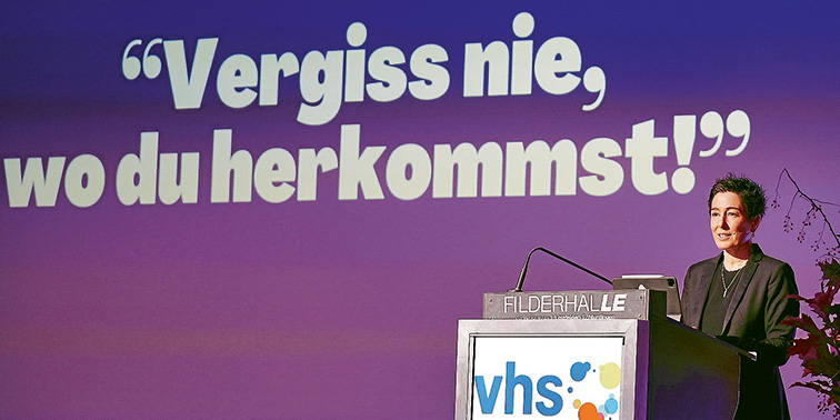Hayali – sicherlich der Hauptgrund, warum rund 850 Menschen an diesem Abend gekommen waren – warb im Anschluss an die Grußworte von Landtagspräsidentin Muhterem Aras energisch dafür, dass der Artikel 1 des Grundgesetzes wieder mehr Beachtung findet. „Die Würde des Menschen ist unantastbar“, heißt es dort – „unabhängig von Geschlecht, Nationalität oder Religion“, so die Journalistin, die die Betonung auf das Wort „Mensch“ legte.