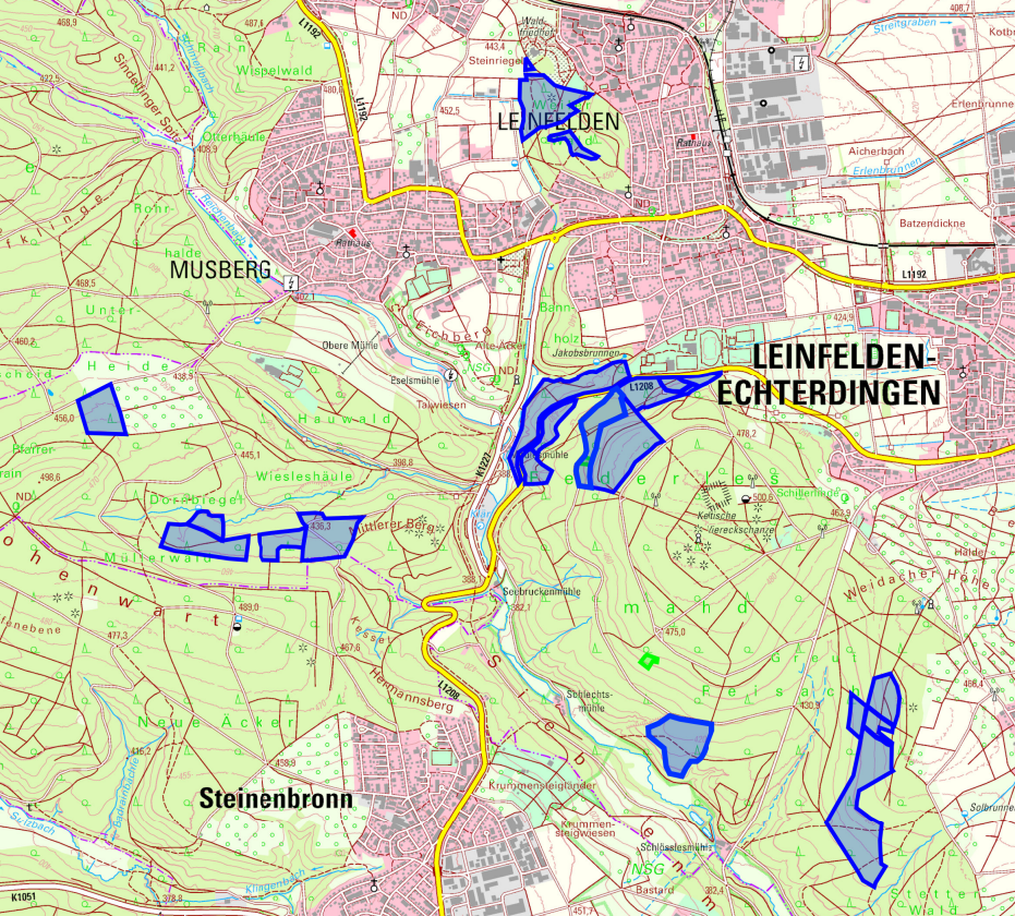 - Musberg: Bergweg, Bettelweg, Musberger Heideweg
