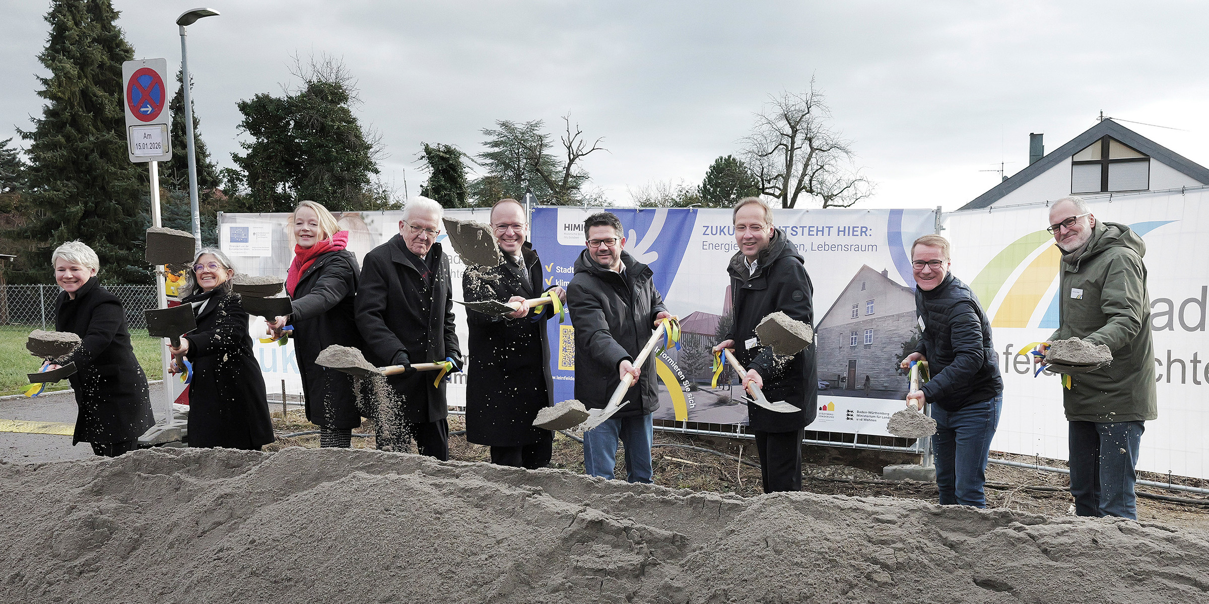 Mit dem offiziellen Spatenstich hat der Bau der neuen Energiezentrale in der Historischen Mitte von Echterdingen begonnen. Zu den Gästen zählten auch Ministerpräsident Winfried Kretschmann und Umweltministerin Thekla Walker.