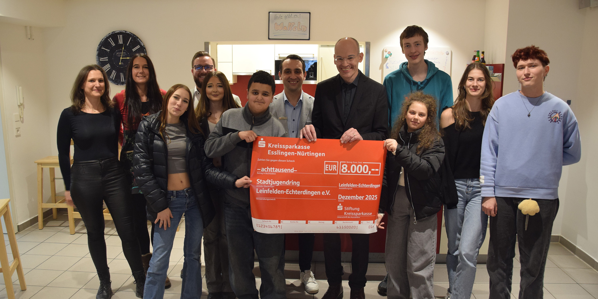 „Wir freuen uns sehr über die Unterstützung der Kreissparkasse Esslingen-Nürtingen“, sagt Stephanie Mitschele (Foto: 2. v. l.) vom Stadtjugendring, Projektleitung des ‚Club Musicals‘. Mit der Spende können wir noch mehr Jugendlichen aus unterschiedlichen Lebenswelten den Zugang zu kultureller Bildung ermöglichen und ihnen einen sicheren Raum bieten, in dem Vielfalt, Teilhabe und soziale Gerechtigkeit selbstverständlich gelebt werden.“