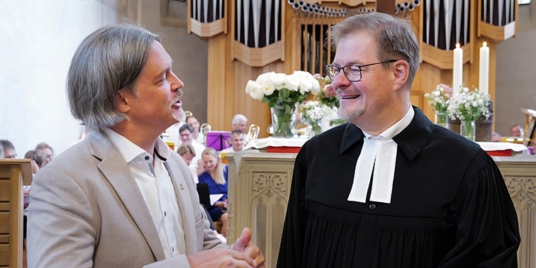 Erster Bürgermeister Benjamin Dihm begrüßte am vergangenen Sonntag Pfarrer Daniel Vögele beim Investitur-Gottesdienst in der Stephanuskirche in Echterdingen. „Eine große und lebendige Kirchengemeinde freut sich auf Sie“, sagte Dihm.