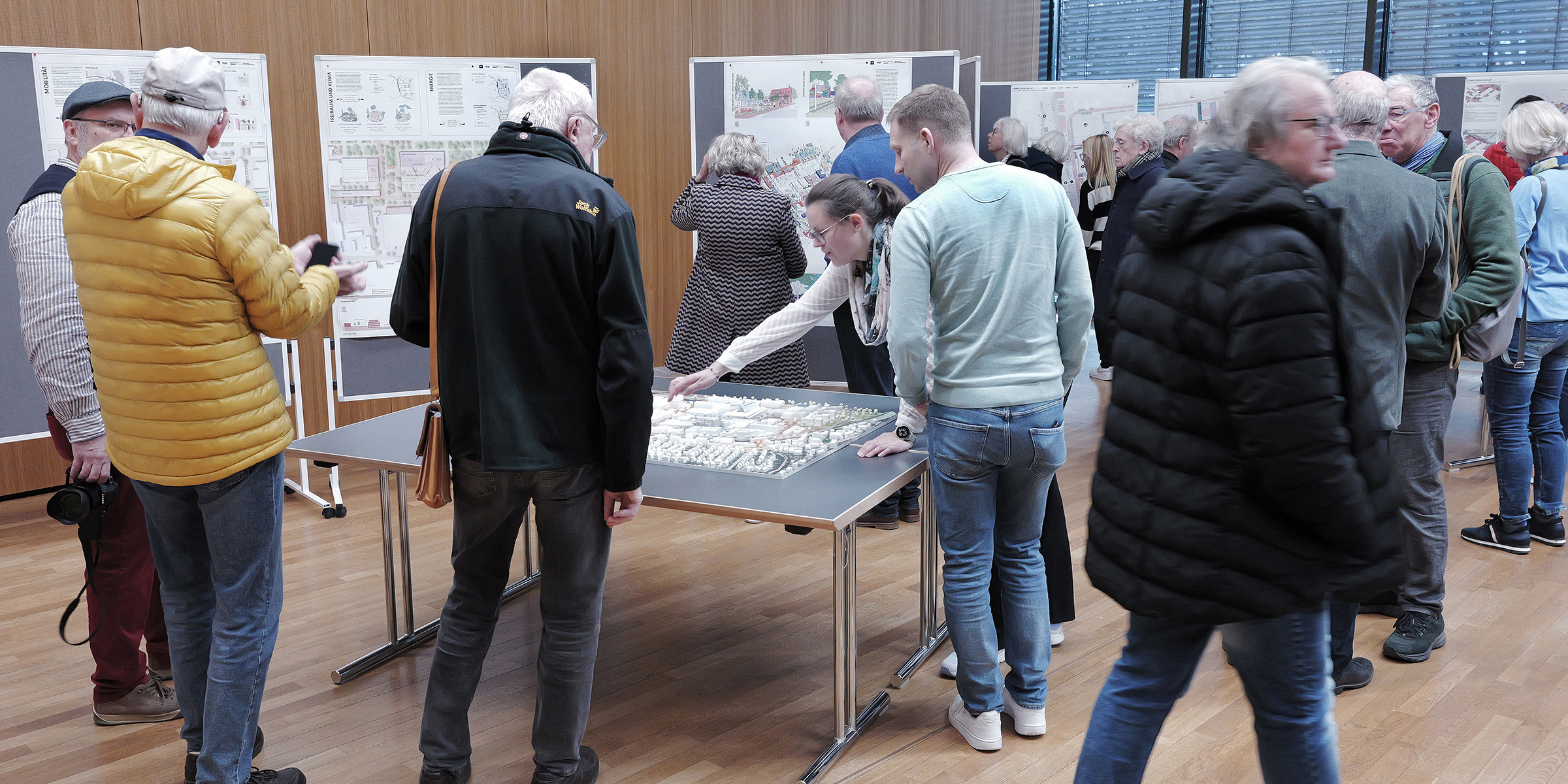 Modelle und Planunterlagen aller drei Büros waren im Saal ausgestellt. An den jeweiligen Ständen standen Ansprechpartner bereit, um Fragen zu beantworten und mit den Bürgern ins Gespräch zu kommen.