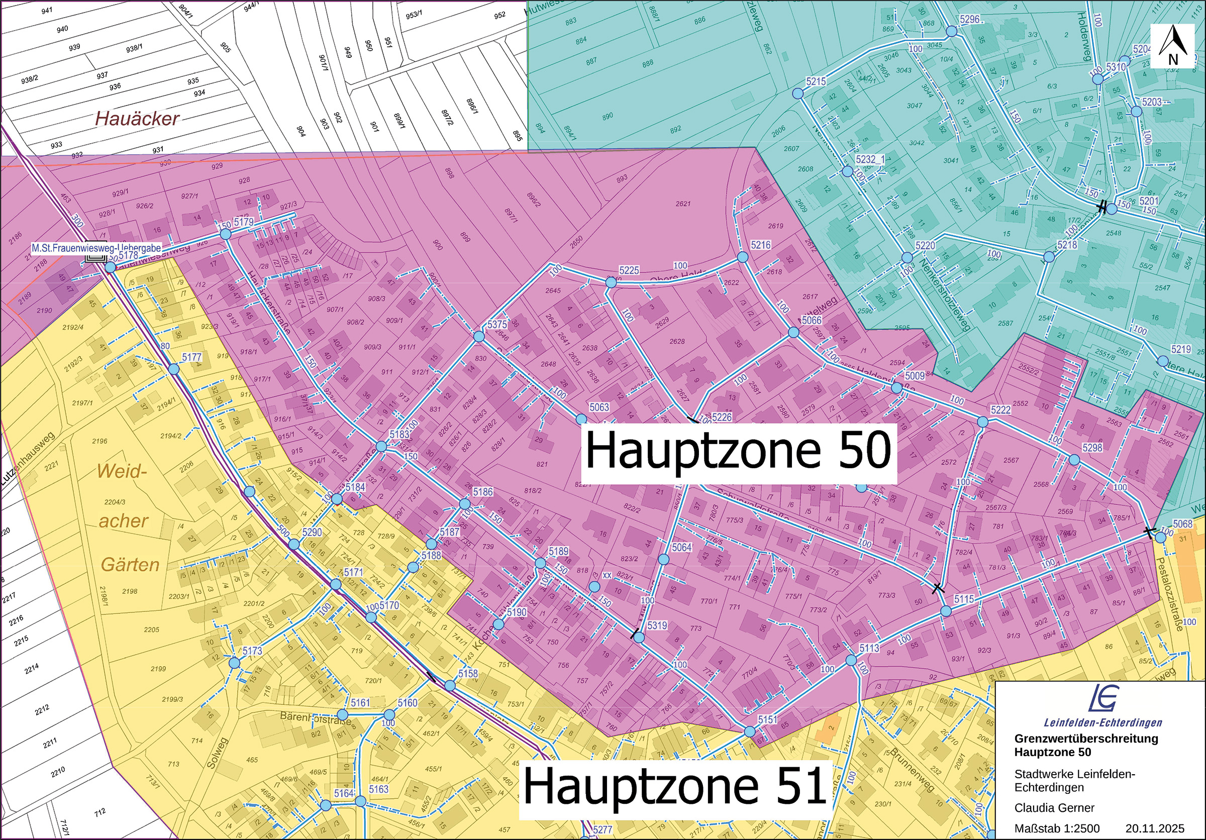 Folgendes Teilgebiet, die Hauptzone 50 (rosa markierter Bereich), war betroffen: