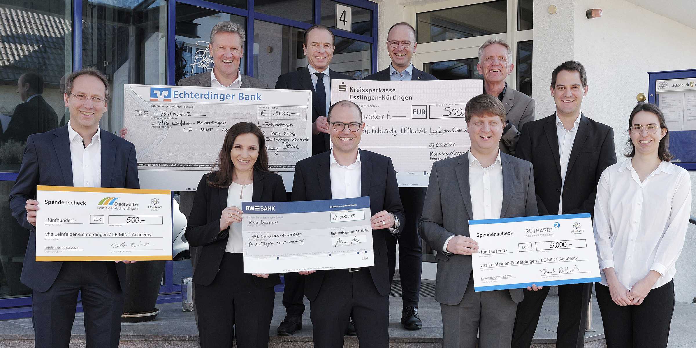 Mehrere Unternehmen aus der Region beteiligten sich an der Spendenaktion: die Stadtwerke LE (500 Euro), die Echterdinger Bank (500 Euro), die BW Bank (2.000 Euro), die Kreissparkasse Esslingen-Nürtingen (500 Euro) sowie die Firma Ruthardt (5.000 Euro). Deren Geschäftsführer Frank Ruthardt gehört zudem zu den Initiatoren der MINT Academy. Die Unterstützung soll dazu beitragen, junge Menschen früh für Technik und Wissenschaft zu begeistern und damit wichtige Impulse für die Zukunft zu setzen.