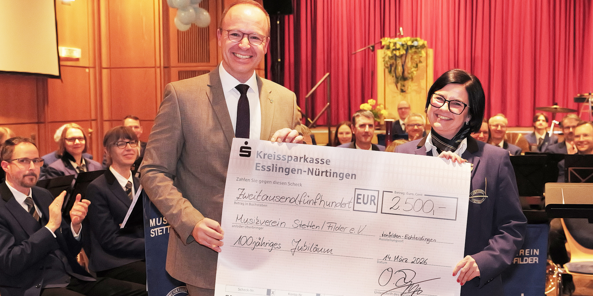 Mit zwei Uraufführungen setzte der Verein ein klares Zeichen seiner künstlerischen Weiterentwicklung: Der „Fildermarsch“ sowie „Evolving Places“, ein Werk über die Geschichte Stettens, begeisterten das Publikum. Weitere Grußworte von Annika Ruf (Kreisverband Stuttgart/Filder) – sie überreichte eine 500-Euro-Spende – und Irina Kunzi-Watolla (Vereinsring Stetten) unterstrichen die enge Vernetzung in der Region.