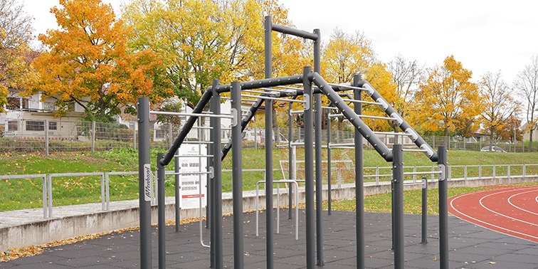 Im Herbst 2024 begann die Sanierung des Stadions, die Planungen liefen bereits seit Sommer 2023. Es wurde nicht nur der Gummibelag auf der Tartanbahn erneuert, auch die nicht mehr standsicheren Flutlichtmasten wurden ausgetauscht. Darüber hinaus wurde eine neue Calisthenics-Anlage, eine Reckanlage für intensives Eigengewichtstraining (Foto unten), installiert. Als besonderes Highlight sind unter der Laufbahn Sonden eingebaut, die über einen Magnetschirm die elektronische Zeiterfassung ermöglichen. Damit wird sportwissenschaftlich fundiertes Training möglich.