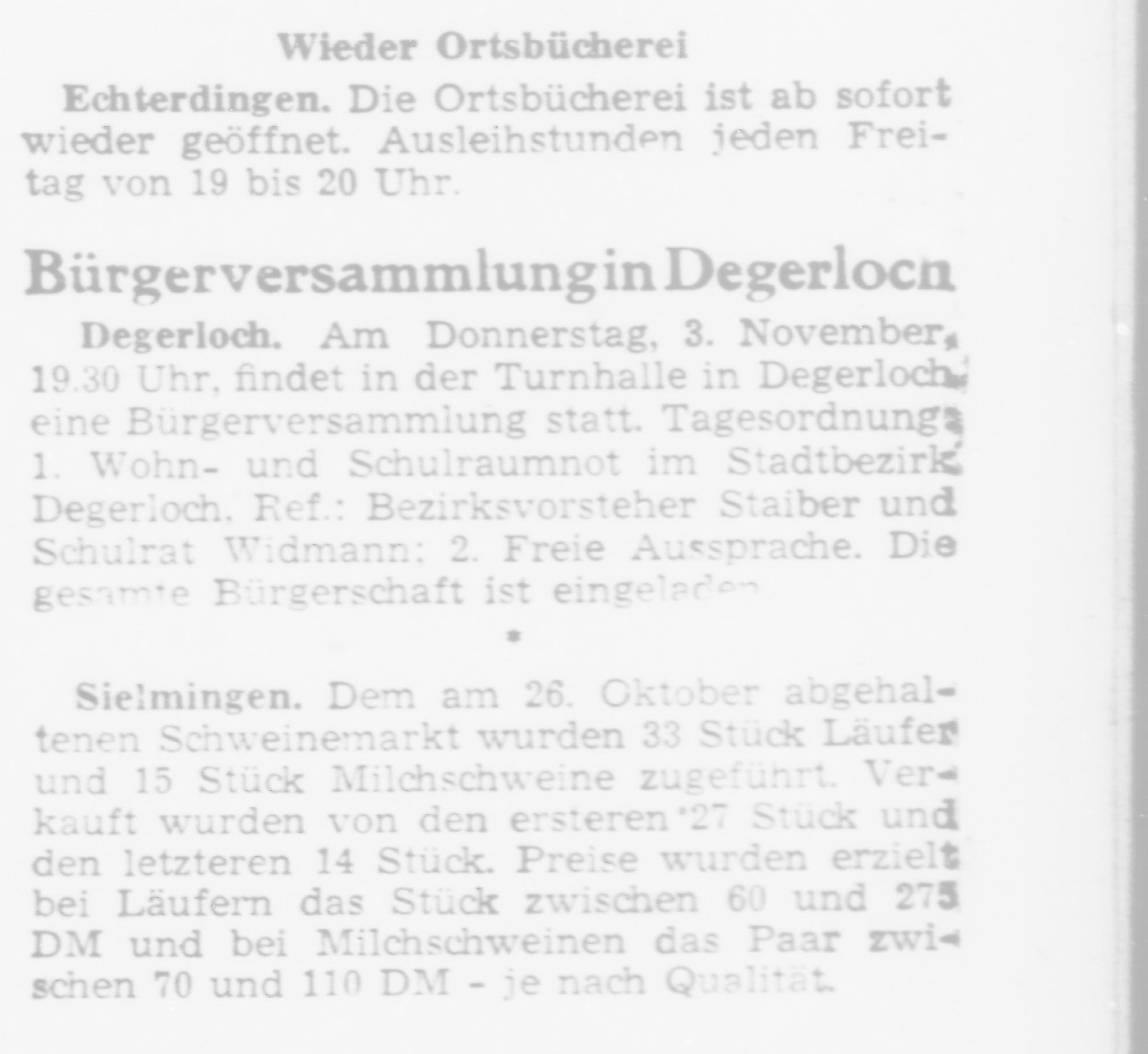 Der Filderbote schrieb im Jahr 1949 über die Wiedereröffnung der Ortsbücherei. Seit dem Ende des Zweiten Weltkrieges war die Bücherei geschlossen. Die Öffnungszeiten verschoben sich von donnerstags auf freitags, es blieb aber bei 19-20 Uhr. Lehrerinnen und Lehrer betreuten in ihrer Freizeit mit ihren Schülerinnen und Schülern die Bücherei. Im Jahr 1958 hatte die Bücherei einen Bestand von 694 Büchern. Oberlehrer Oskar Vincon wurde zwischenzeitlich zum neuen Leiter der Bücherei ernannt.