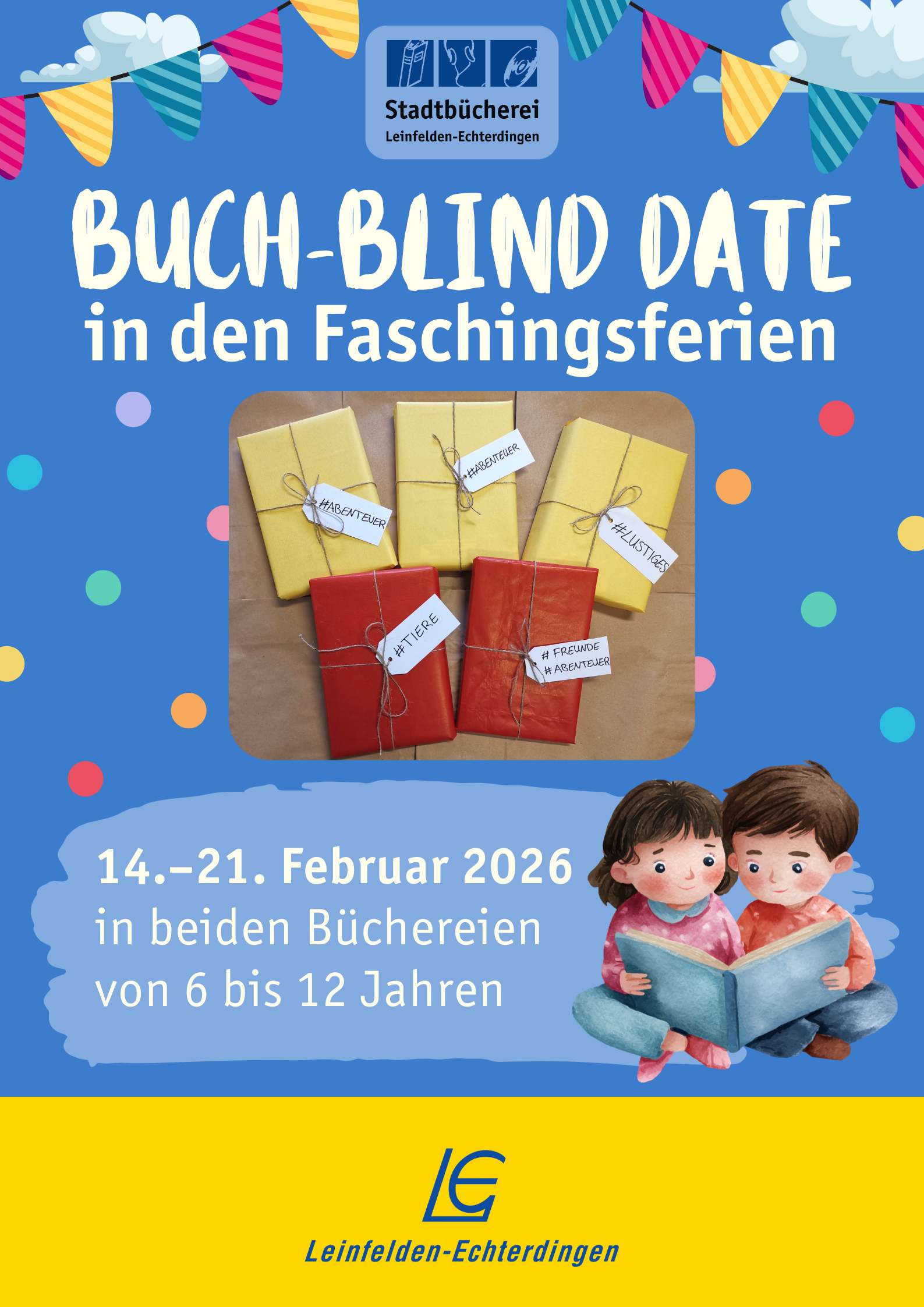 Zu einem unterhaltsamen und abwechslungsreichen Veranstaltungsprogramm für alle von 0 bis 99 Jahren lädt die Stadtbücherei Leinfelden Familien, Freunde und Bekannte ganz herzlich ein.