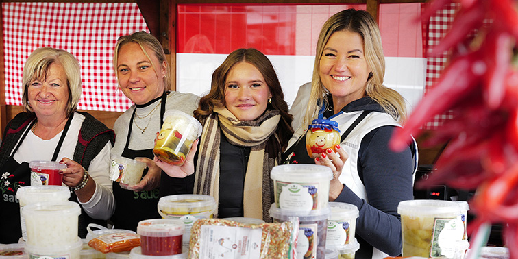 Freilich stehen die unterschiedlichen Genüsse und Zubereitungen des feinen Filderkrauts im Mittelpunkt der größten deutschen Krauthocketse! Und falls Sie es noch nicht wussten, dann werden Sie staunen, welche Schlemmereien sich aus einem Spitzkrautkopf außer Sauerkraut so zaubern lassen. Krautwickel, Schlachtplatte, Schupfnudeln, mit Kraut gefüllte Rouladen – und nicht zu vergessen: die Original Echterdinger Deie und der nach altem Rezept hergestellte Echterdinger Krautkuchen, beides von den Landfrauen in bester Handarbeit im historischen Backhaus gebacken.