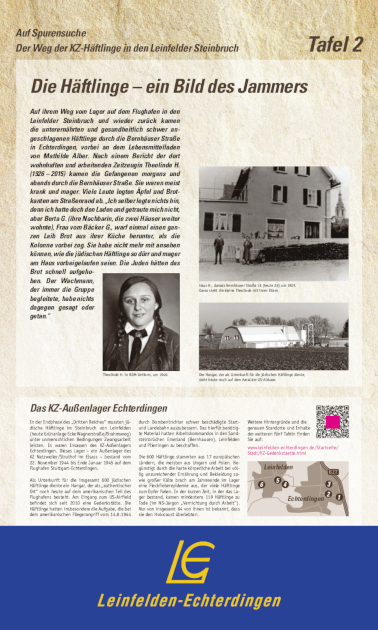 Weitere Informationen zur KZ-Gedenkstätte und dem KZ-Außenlager erhalten Sie bei der Geschichtswerkstatt KZ-Außenlager im Stadtarchiv Leinfelden-Echterdingen und im Stadtarchiv Filderstadt sowie auf der Webseite der Gedenkstätte Echterdingen – Bernhausen.