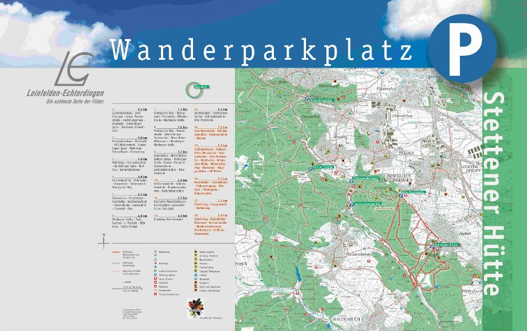 In LE gibt es insgesamt sechs Wanderparkplätze. Sie sind beliebte Ausgangspunkte für kurze Spaziergänge und ausgiebige Wandertouren. An den Informationstafeln bei der Stettener Hütte, der Alten Poststraße, der Seebruckenmühle, am ersten Viadukt im Siebenmühlental, an der Häfner Steige und am Wanderparkplatz Schmellbachtal bekommen Sie einen Überblick über alle Strecken im Stadtgebiet. Markierungstafeln mit den Nummern der einzelnen Wanderrouten am Wegrand – zuverlässig angebracht von den Ortsgruppen des Schwäbischen Albvereins und der Stadtverwaltung – erleichtern Ihnen die Orientierung.