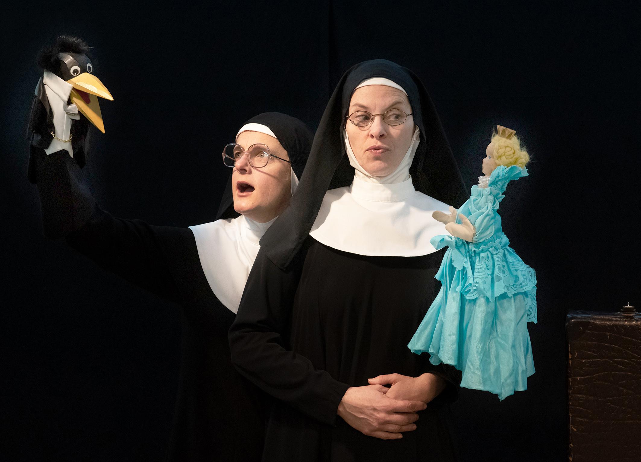 Ojemine! Schwester Theodora und Schwester Elisabeth haben aus Versehen den Koffer mit den Kasperpuppen mitgenommen! Und die Krippenfiguren sind im Kloster geblieben. Nun können die frommen Nonnen die Geschichte von Jesu Geburt gar nicht spielen.