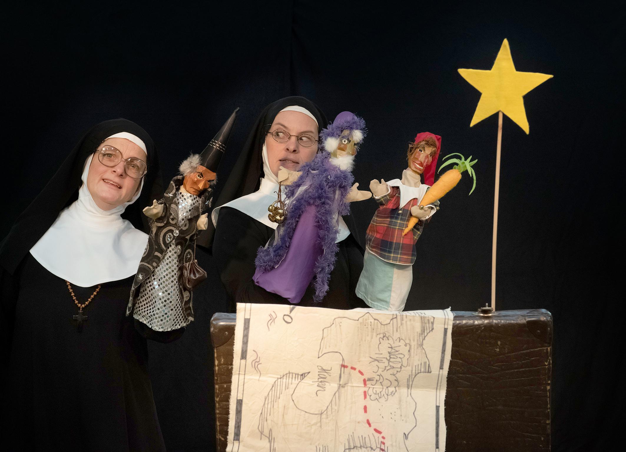 Ojemine! Schwester Theodora und Schwester Elisabeth haben aus Versehen den Koffer mit den Kasperpuppen mitgenommen! Und die Krippenfiguren sind im Kloster geblieben. Nun können die frommen Nonnen die Geschichte von Jesu Geburt gar nicht spielen.