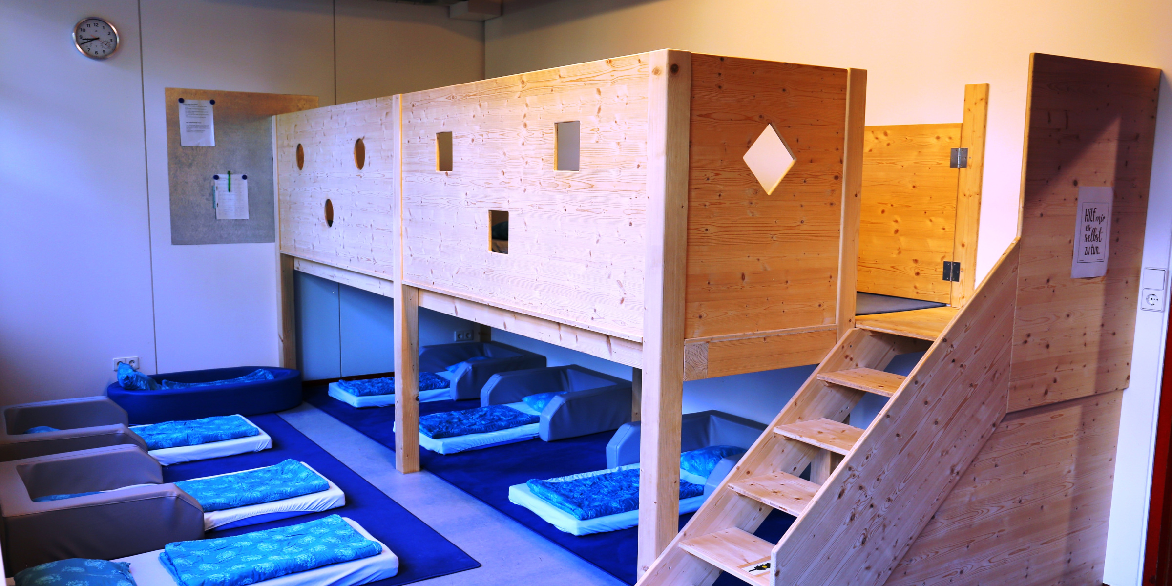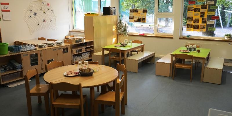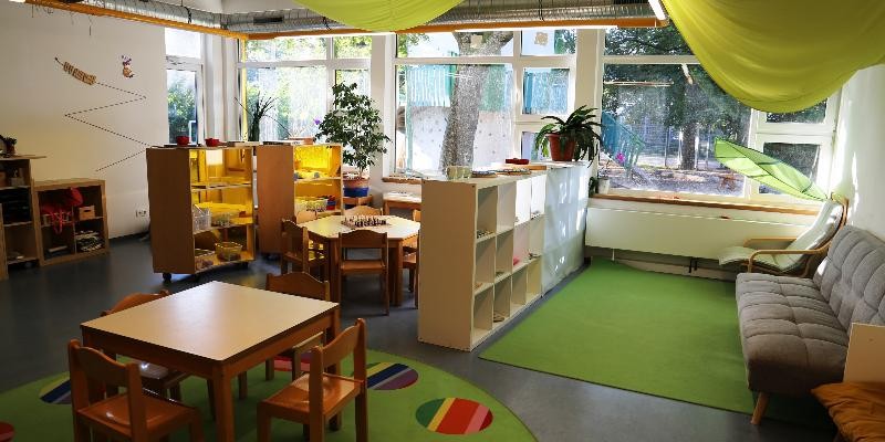 Raumkonzept: In unterschiedlichen Lern-und Bildungsräumen, verbunden mit einer vorbereiteten Umgebung, werden die Kinder zur Selbsttätigkeit angeregt. Sie sollen Selbstgestalter ihrer Entwicklung und Bildung sein. Das Außengelände wird ebenso als eigenständiges Lernfeld eingesetzt. Pädagogisches Personal begleitet die Kinder durch gezielte Beobachtungen. Ansprechendes Material und Impulse werden darauf abgestimmt.